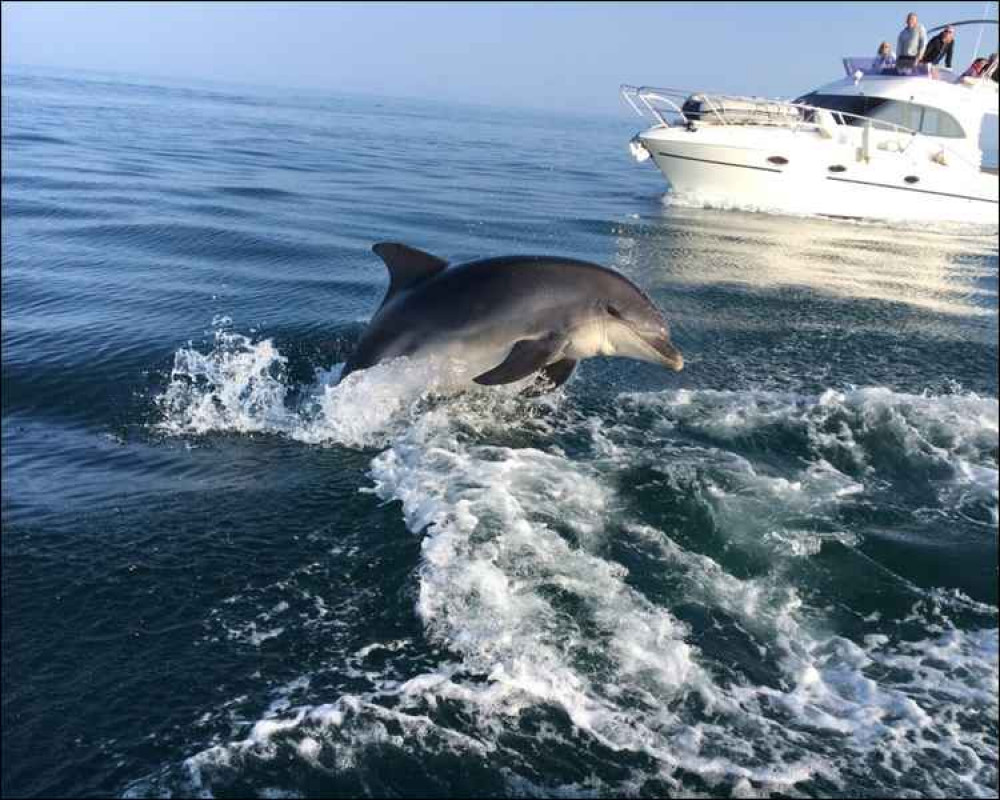 These photos taken by Roger Jackson show two dolphins swimming in the sea around 10 miles from Exmouth